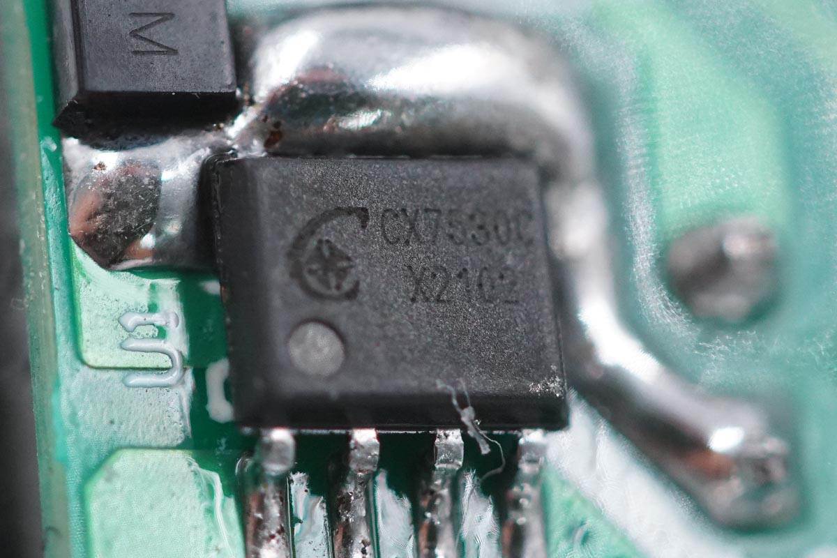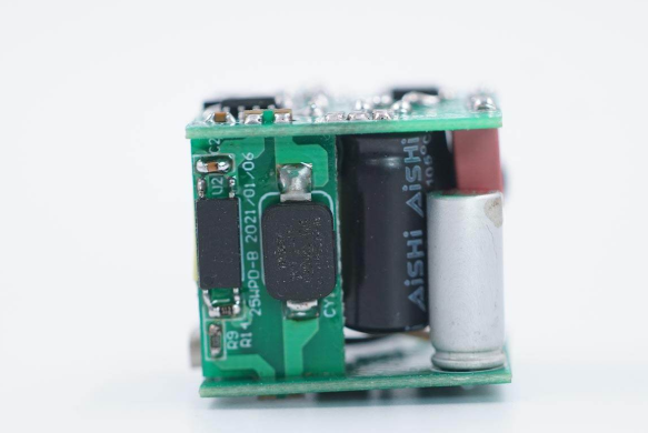 乐鱼体育这款 25W 方案采用三块 PCB 堆叠焊接的方案,初级小板上有整流桥和 CX7530C 反激控制器芯片。